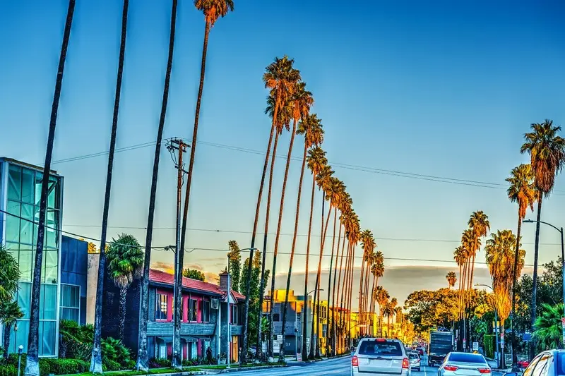 A trendy shopping and cultural district with boutiques, street art, vintage shops, and renowned fashion stores, showcasing LA's creative energy.